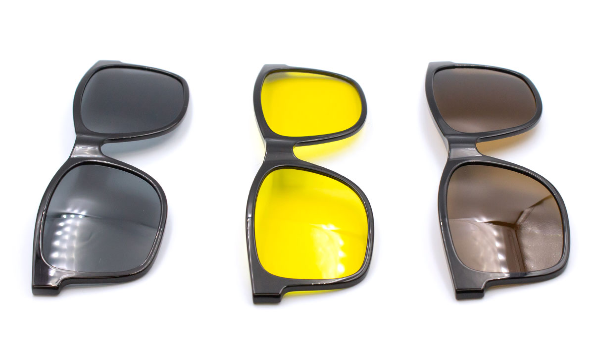 Данная модель изготовлена из прочного и легкого пластика, обеспечивая комфорт при повседневной носке. Особенность оправы — три сменные насадки на магнитах, которые легко и быстро фиксируются, позволяя адаптировать очки под различные условия освещения и задачи.
